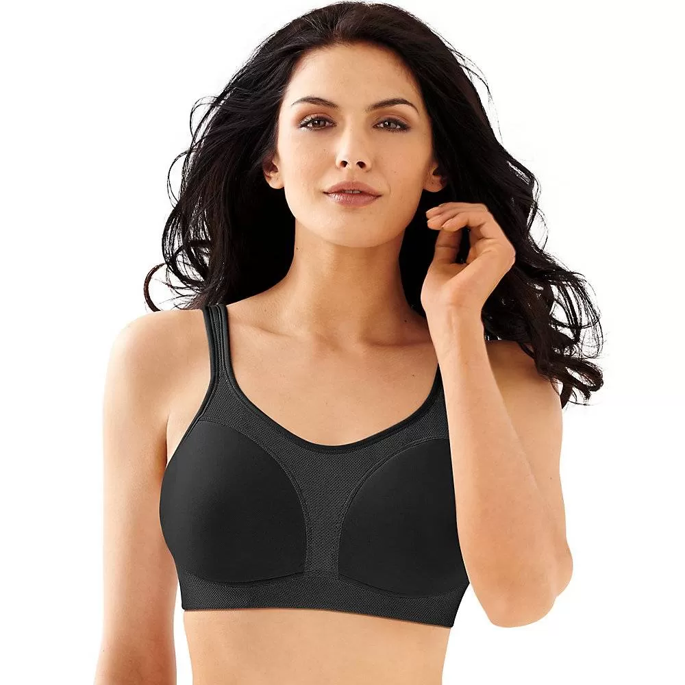 Your go-to bras! The Bali Active Collection offers the benefits of sports bras with the beautiful details you expect from Bali. With X-Temp technology, designed to wick moisture and adapt to your body temperature. Breathable fabric and foam cups. Extra Coverage styling gives you more fabric around the rounded neckline and on the sides under the arms. Two-ply built-up back helps provide back smoothing. Cushioned convertible straps to fit your diverse wardrobe. Wirefree, with no chafe seams for comfort.