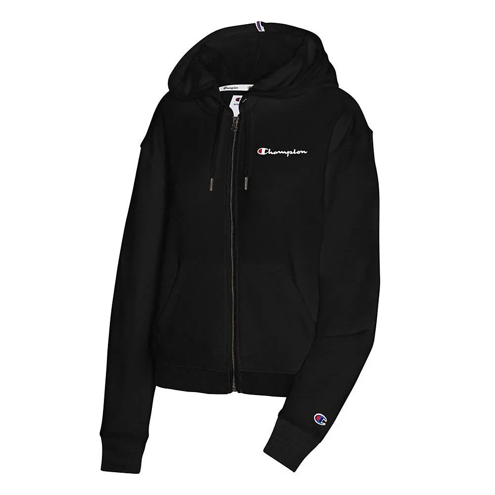 Information:EASY, BREEZY FRENCH TERRY ZIP HOODIEWe're started the hoodie revolution and decided to make a lighter-weight French terry hoodie that's just right for warmer days. Whether you're headed to the gym or on the go, this full zip hoodie is perfect layered over a crop top or tee. Yarn-dyed stripe ribbed cuffs and waistband revs up the collegiate vibe. Lighter-weight French Terry fabric has a soft, looped back.Yarn-dyed ribbed cuffs and waistband.Split front kanga pockets.Jersey-lined hood with tipped drawcords.Relaxed fit.Full front zip.Script logo back neck tape.Embroidered 3.5-inch Champion logo left chest. C patch at left sleeve.