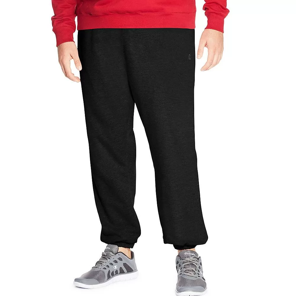Get moving in Fleece Pants designed to fit sizes up to 6XL from the Champion Big and Tall collection. Full athletic fit allows flexible range of motion. Breathable 8.1 oz. cotton blend fleece is brushed inside for softness. Stay put, covered elastic bottom leg. Two inseam pockets bartacked for durability. Comfortable double-stitch elasticized waist never binds and adjusts with an inside drawcord for a flexible fit. Champion C logo at left hip.