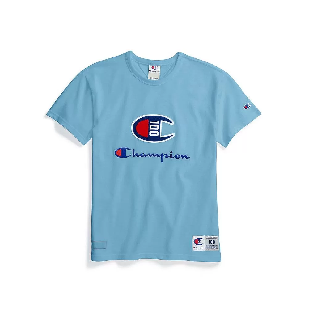 Review: 5 - "Loved It!" by Rachel Frenette, written onInformation:Century Tee re-defines a sport classic built on 100 years of Champion heritage.Crafted from heavyweight cotton jersey.Special edition C100 logo and jock tag.Ribbed crewneck with vintage whistle patch at back neck.Double-stitched seams throughout.Chenille C100 5.75-inch applique. Embroidered 10-inch Champion logo. Retro C100 jock tag lower left hem. Chainstitch C patch logo left sleeve.