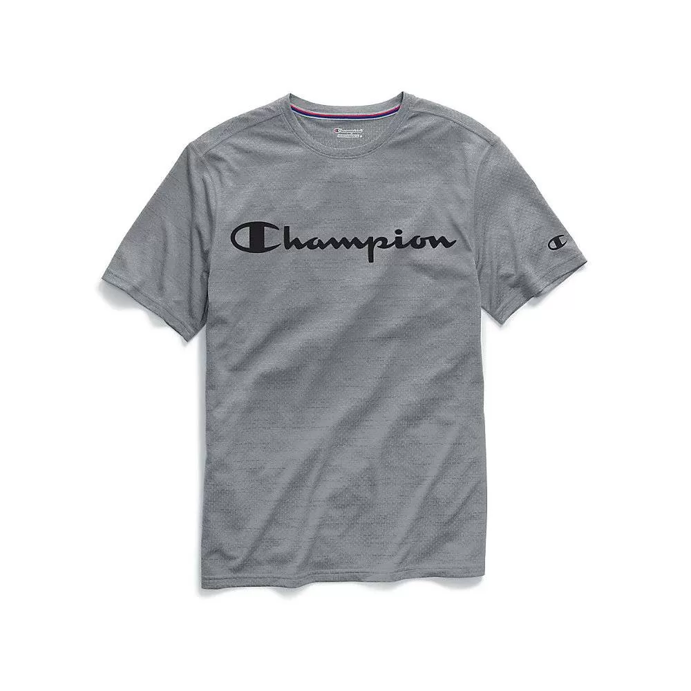 Information:Fast drying Performance Tee works on so many levels to keep you cool and comfortable.Double Dry technology wicks sweat for drier, cooler comfort.FreshIQ® advanced odor protection technology helps tee resist odor.Lightweight, mesh-textured tee dries quickly and moves with you.12-inch screenprint Champion logo center chest. patch logo on sleeve.