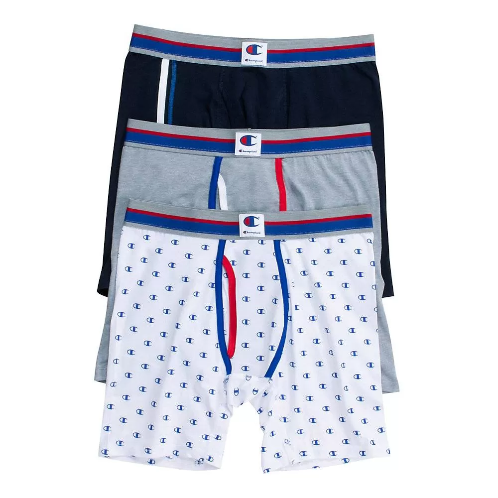 Information:Cotton-rich Boxer Briefs provide moisture-management for all day comfort.Moisture-wicking cotton fabric with stretch for ease.Moisture-wicking waistband with logo tab at front.No-ride up fit stays in place.Smooth flat seams for comfort.Self fabric front pouch with fly.Regular length with hemmed legs.Convenient 3-pair pack.