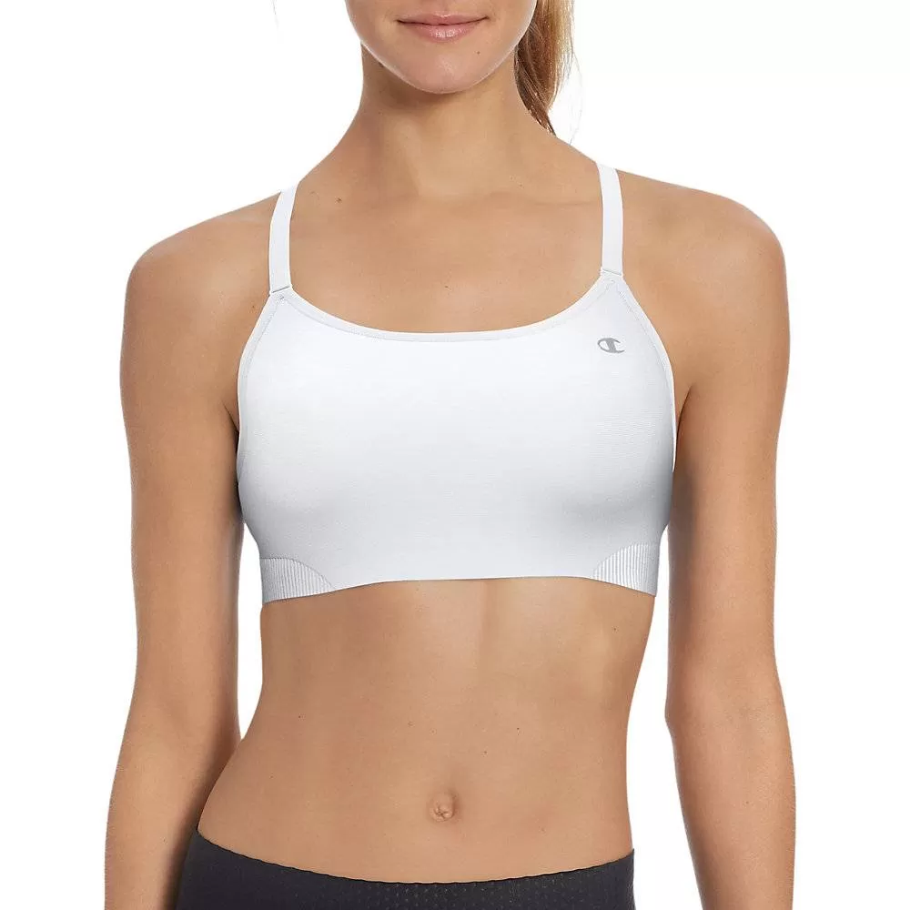 Information:Friction FighterThe Absolute Cami keeps your moves smooth and chafing in check whether you're cycling or walking.Champion Vapor technology wicks sweat and dries quickly for cooler comfort.Sleek SmoothTec Band guards against chafing and skin-irritation.Fewer seams reduce chafing for no workout distractions.Wirefree Moderate Support keeps bounce under control.Compressive fit for support.Knit-in side stretch.Back adjustable cami straps for a customized fit.