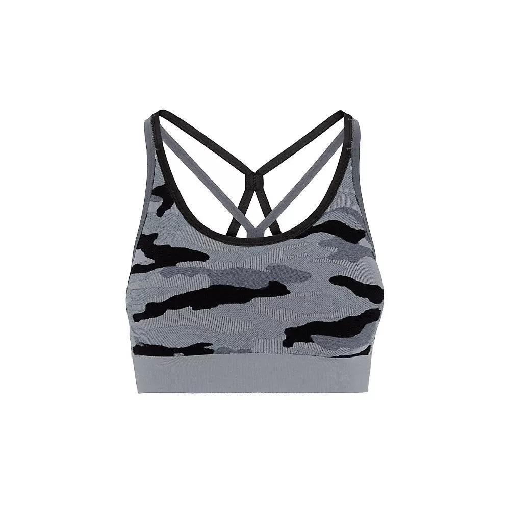 Information:The Camo Sports Bra brings the modern utility look to your workout and training. Double Dry technology wicks sweat away from skin to manage moisture and keep you drier. All-over stretch and seamless design minimize chafing. Moderate Support bra with removable cups for shaping and modesty. Supportive, soft knit-in band. Pullover bra with strappy crossover back for max ventilation.
