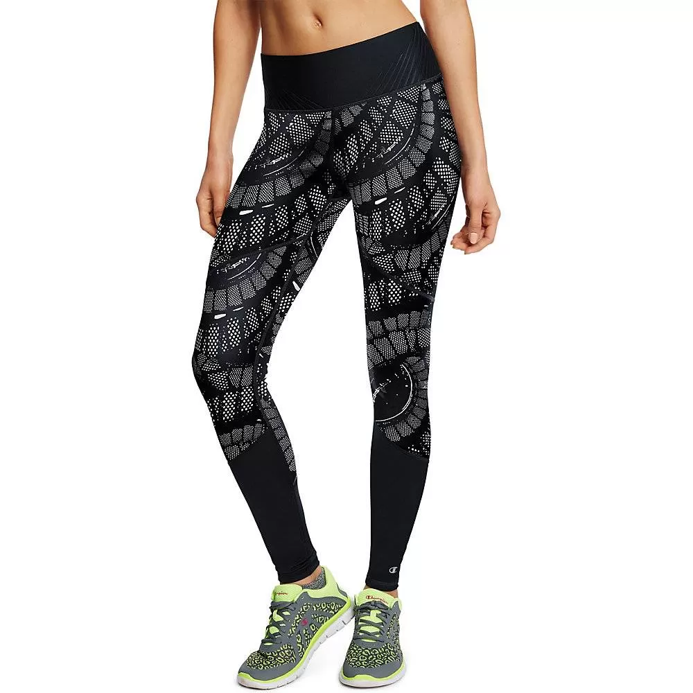 Information:Champion 6.2 Run Printed Tights focus on comfort so you don't lose yours, and feature the SmoothTec Band to help fight friction.SmoothTec waistband and leg openings resist chafing, so you can train with no distractions.Champion Vapor technology wicks moisture and helps fabric dry quickly.Stretches with you to follow every stride.Chafe-resistant flatlock seams are soft on skin.Low profile back stash pocket.Inseam: 21-inches.Reflective accents and C logo on hip.