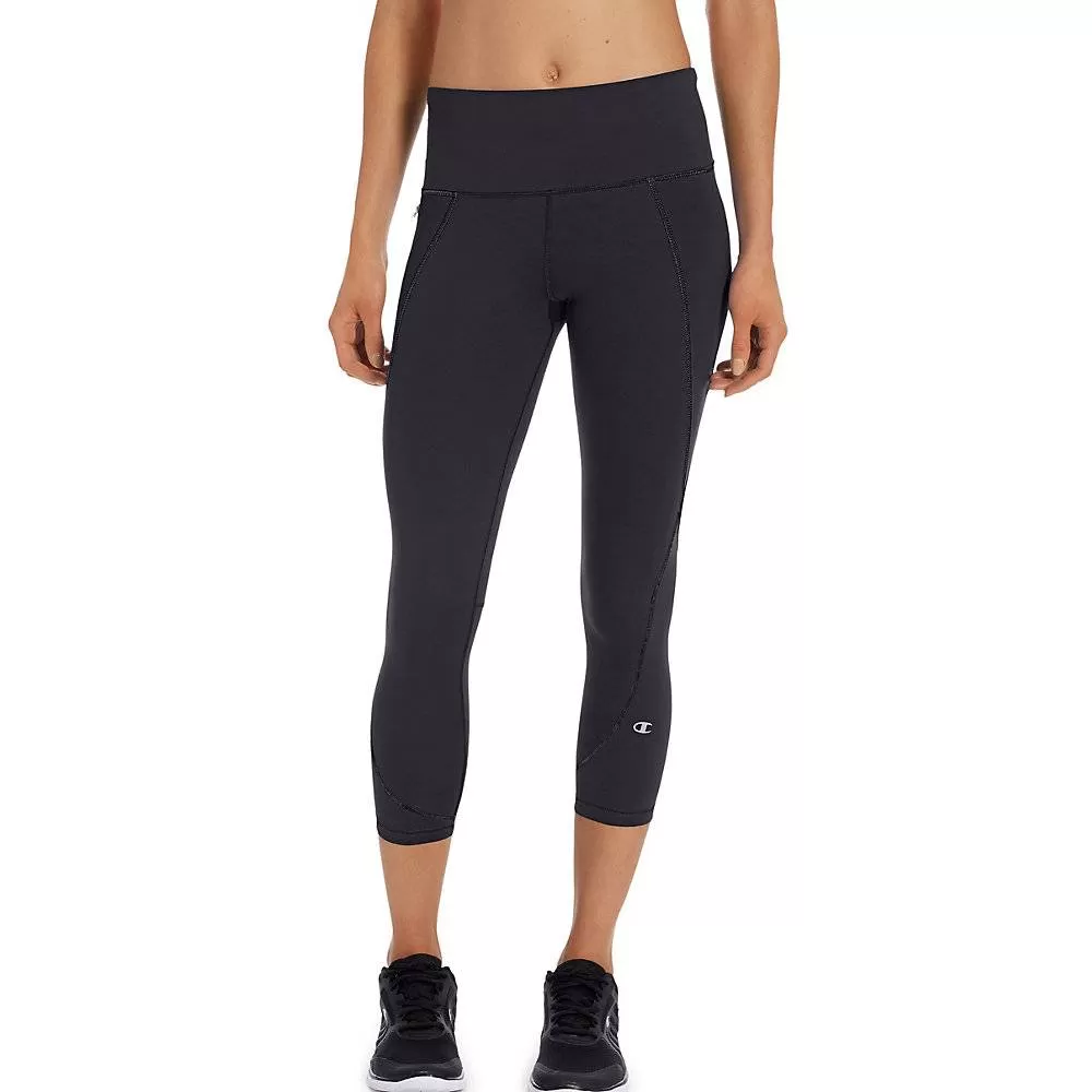 Information:Our Run Capris deliver cooler comfort on so many levels, so you can focus on your with no distractions.Champion Vapor technology with X-Temp dries faster as your body heat rises.Wicks sweat away from skin for cooler, drier comfort.Perforated back waistband and leg panels provide targeted ventilation and breathability.Inner drawcord adjusts your fit.Chafe-resistant flatlock seams feel great against skin and keep your look sleek.All-over stretch follows every move.Hidden side zip pocket.Reflective accents for training after dark.21-inch inseam.