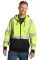 Designed for visibility, this durable heavyweight hoodie is also warm and comfortable. 8.6-ounce, 100% polyester smooth-faced fleece Black bottom front and cuffs for a cleaner appearance Durable, reflective 2-inch tape meets ANSI 107 requirements and provides 360-degree visibility on body and sleeves Three-panel hood with drawcord closure Taped neck Front pouch pockets Molded center front zippered closure Rib knit cuffs and hem This garment must be fully zipped to be in compliance with ANSI 107 standards.