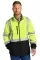 This warm performance soft shell combines superior weather protection with the highest class of visibility. 100% polyester woven shell with durable water-repellent (DWR) finish bonded to a water-resistant, breathable film insert and a 100% polyester microfleece lining Black bottom front and lower sleeves for a cleaner appearance Fabric waterproof rating: 5000MM Fabric breathability rating: 5000G/M2 Full-length interior storm flap with chin guard Durable, reflective 2-inch tape meets ANSI 107 requirements and provides 360-degree visibility on body and sleeves; tape is bonded to fabric Molded right chest, hand and center front zippers with rubber pulls Mic clips at shoulders Elastic cuffs with adjustable hook and loop closures and rubber tabs Adjustable drawcord hem This garment must be fully zipped to be in compliance with ANSI 107 standards.