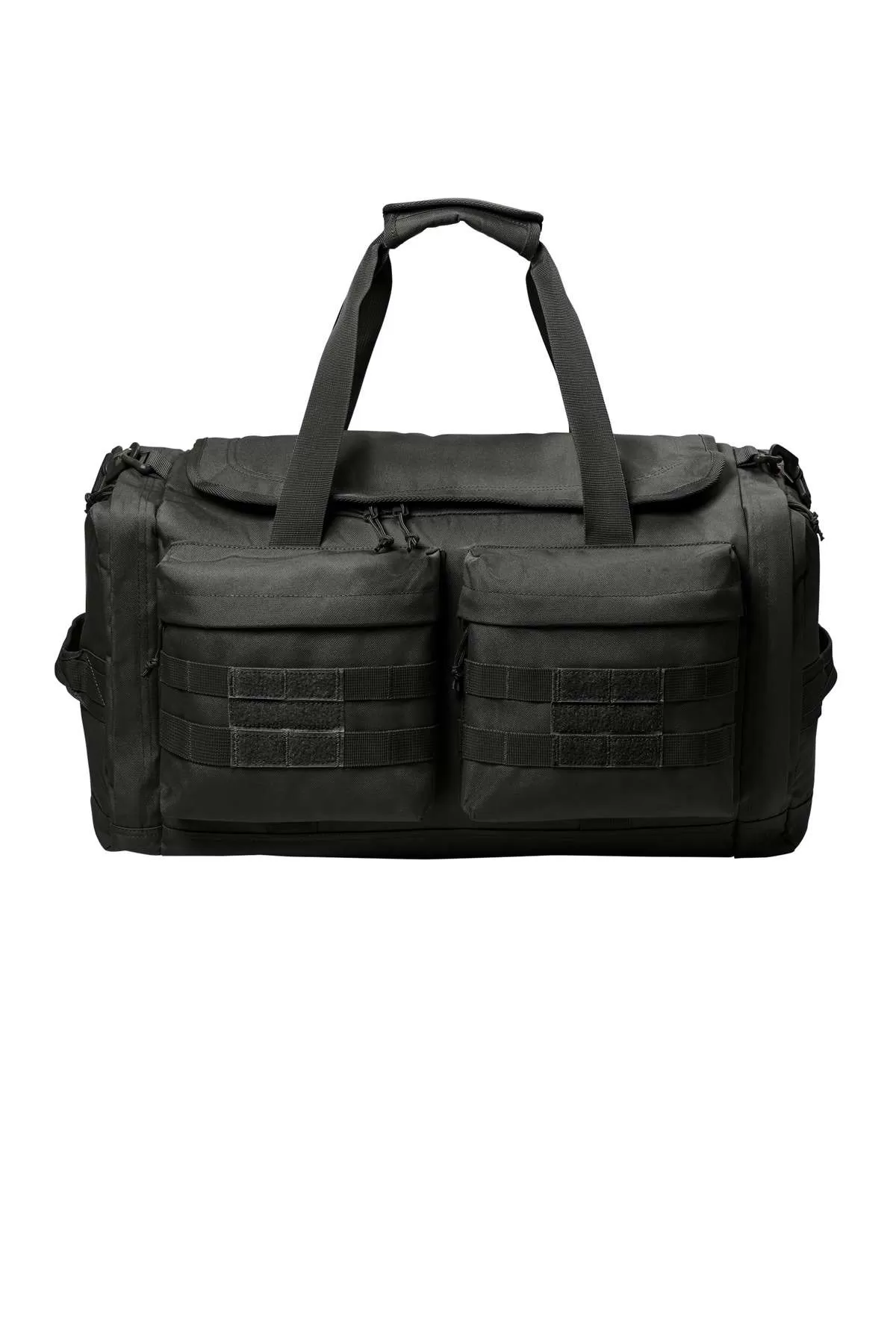 As versatile as it is functional, this rugged duffel is fit for the job, gym or travel. Loop panels stand at the ready to display patches and badges., 600D polyester canvas, Large covered D-shaped zippered main compartment, Interior storage pockets, End zippered shoe compartment with ventilation, End zippered pocket, End web grab handles, Web carry handles with padded handle wrap, Adjustable, removable, padded shoulder strap, Two front zippered pockets with daisy chains and loop panels for badges and patches, Dimensions: 12'h x 22'l x 10'd, Note: Bags not intended for use by children 12 and under.