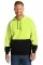 Enhanced visibility joins moisture-wicking performance in this layerable worksite basic. 5.5-ounce, 100% polyester smooth-faced fleece Fabric passes ANSI 107 requirement for chromaticity Moisture-wicking Black bottom front and lower sleeves for a cleaner appearance Three-panel hood with drawcord adjustable closure Taped neck Front pouch pocket Rib knit cuffs and hem