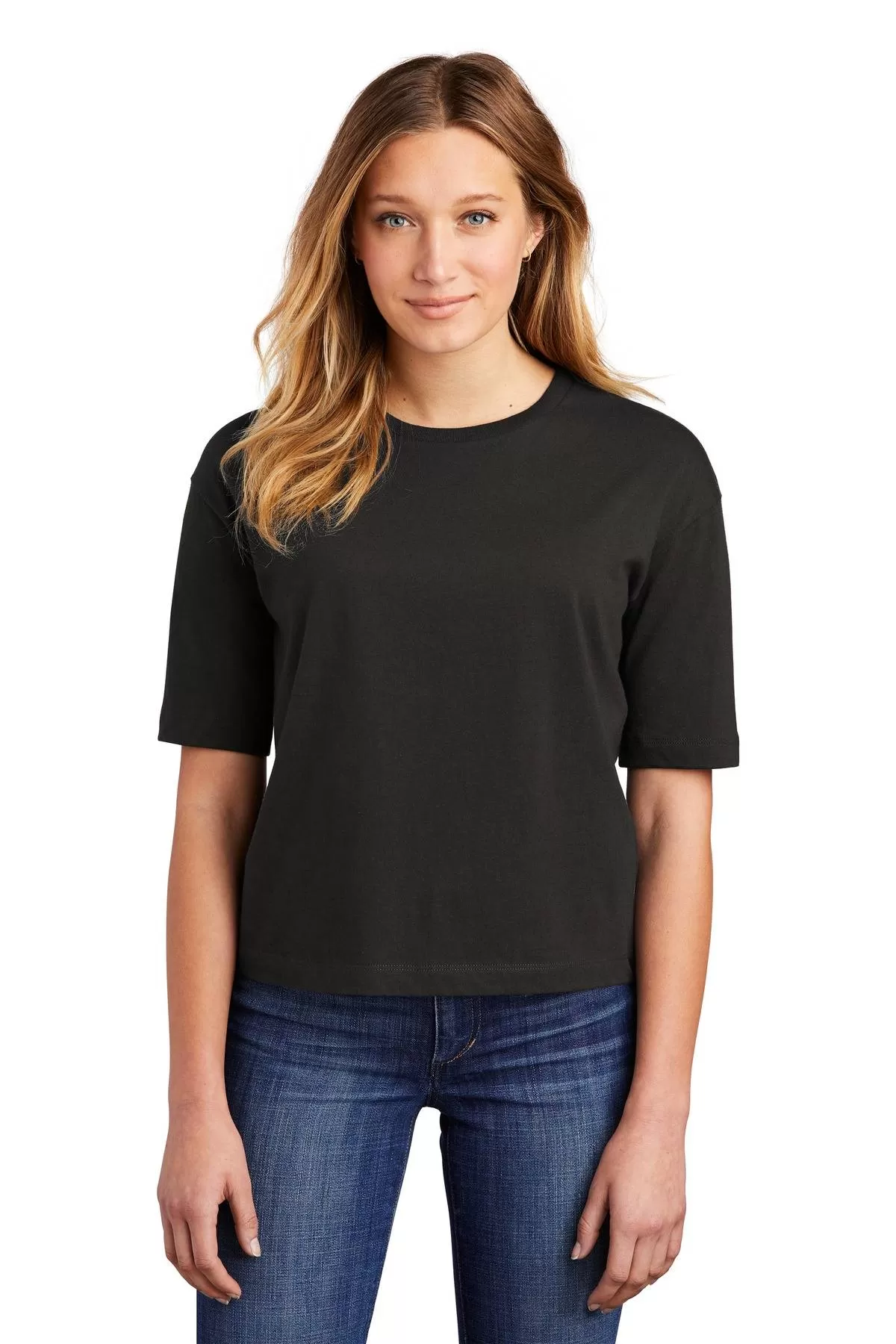 Information:Boxy, but not cropped, this tee is just the look with high-waisted jeans. 4.3-ounce, 100% combed ring spun cotton, 30 singles 50/50 combed ring spun cotton/poly (Heathered Charcoal) Straight, boxier fit with longer sleeve 1x1 rib knit neck Tear-away label Shoulder to shoulder taping