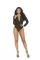 Information:Long sleeve mesh shirt with hook and eye front closure and matching panty with ruched back.
