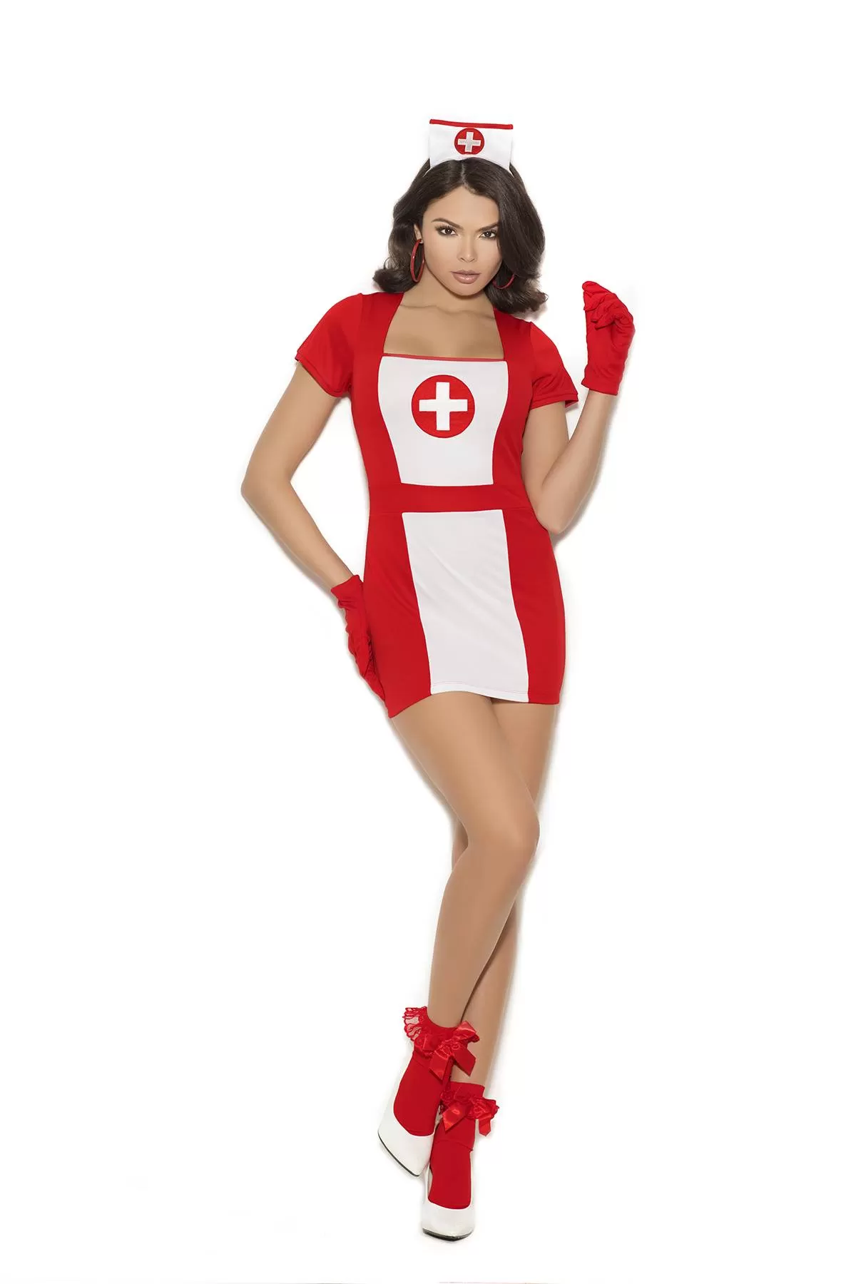 Information:Naughty Nurse - 3 pc. costume includes mini dress, head piece and gloves.