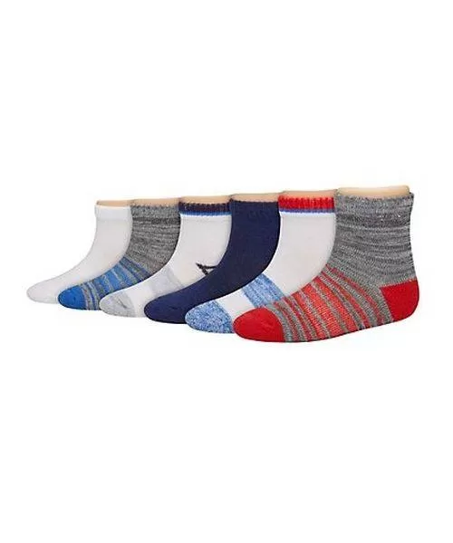 Information:Toddlers on the go will love these ankle socks with non-skid bottoms.Super soft cotton blend with comfy toe seam.A wardrobe stable, ankle socks go great with his favorite shoes.Cushioned heel and toe for durability.Arch support for better fit.Sizing on foot bottom.Non-skid bottom gives his feet more grip when he's on the go. EZ Sort® sock matching system with size on bottom sole makes sorting socks so much easier! Available in an assorted 6-pack.