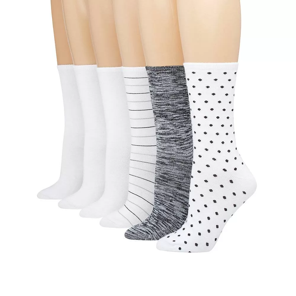 Information:Sock it to your feet in these soft, lightweight and smooth ankle socks!Breathable ComfortBlend® fabric is blended with spandex for a better fit.Soft and durable for long-lasting wear.Crew length socks stay up for added comfort and hit at mid-calf.No added bulk for a confident fit.Available in a convenient 6-pack.