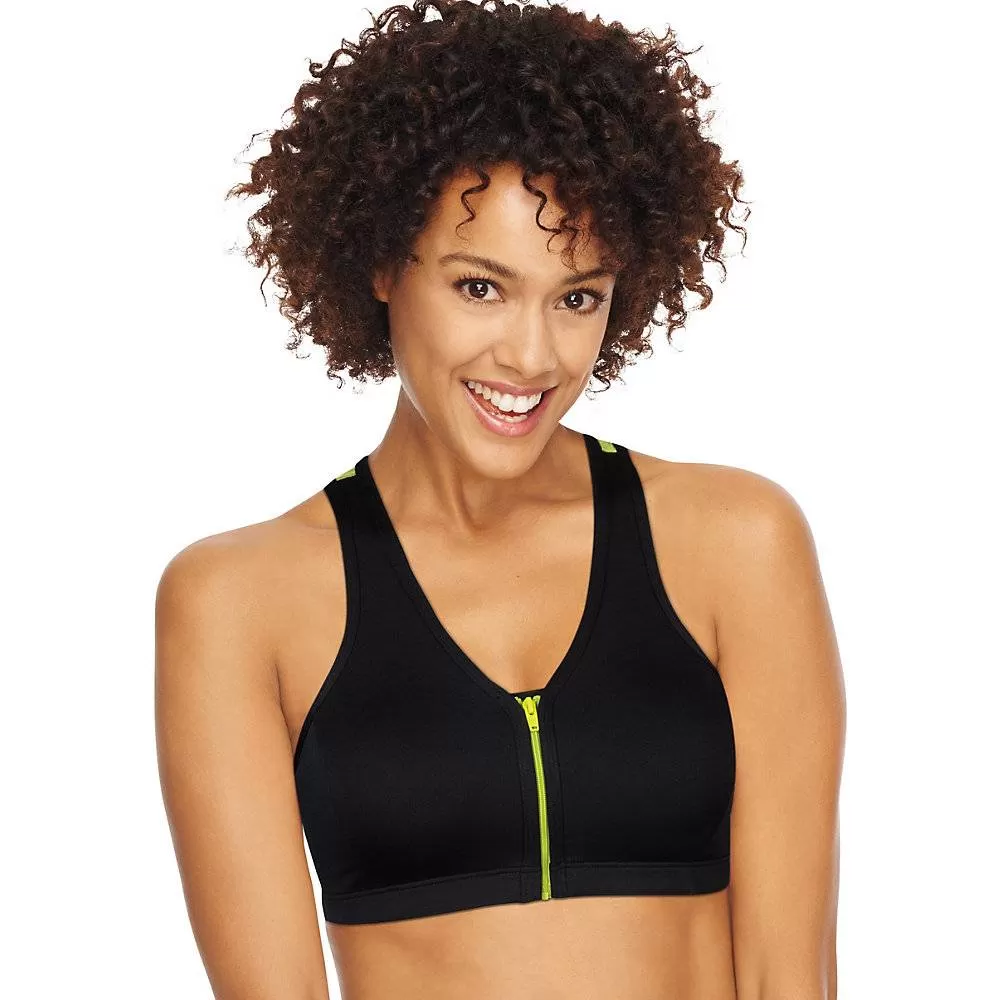 Information:Save workouts for the gym with the Hanes Easy On WireFree Sports Bra.Easy on front zipper makes getting ready for your workout a breeze.ComfortFlex Fit® 4-way stretch fabric provides a flexible fit that shapes to fit you and with Smart Sizes—it's easy to find the perfect fit.Perfect for high impact workouts. Vertical bust seams combined with 2-ply front and sides for added support and shaping. Elastic band provides moves-with-you support.Racerback styling with mesh for added breathability. Tag-free for added comfort.Available in a variety of colors.
