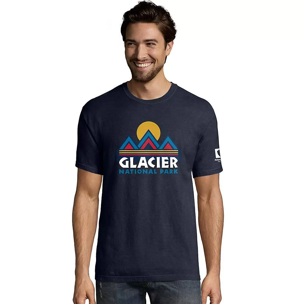 Information:To help preserve and protect our parks for future generations, HanesBrands has partnered with the National Park Foundation, the official charity of America's National Parks, to support America's most treasured places. With over 700 sparkling lakes amidst a rugged mountain terrain, Glacier National Park is a hiker's paradise for those seeking adventure and solitude. Find Your Park in Glacier National Park located in Montana's Rocky Mountains with peaks and valleys that run to the Canadian border.Through the National Parks graphic tee collection, Hanes is proud to support the mission of the National Park Foundation. 5.5-oz 100% ring spun cotton tee is super soft and comfortable.Vintage washed and garment dyed for a retro look and feel.Double-needle, cover-seamed neck with lay flat collar that keeps its shape.Hemmed sleeves and bottom.No shrink comfort for a dependable fit wash after wash. FIND YOUR PARK Â and experience places you have never seen before.