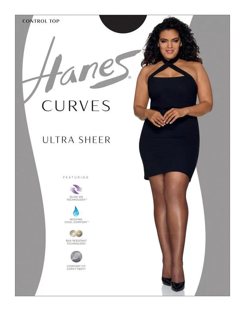 Information:Knit with run resist technology™ in extra sheer Control Top legwear designed specifically for curvy women. Glide On Technology™ makes getting dressed easier. Comfort Fit Curvy panty offers control top smoothing with Hanes signature fit and comfort. Wicking Cool Comfort™ fabric keeps you cool and comfortable all day. Flat seaming and sheer top for no-chafe comfort. 10 denier appearance.