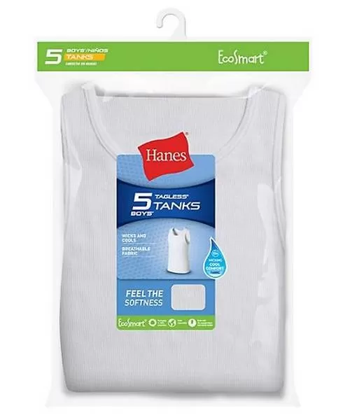 Information:All day comfort for him. Easy on the planet.Breathable, lightweight fabric for all day comfort.At Hanesbrands, 25% of the energy used comes from renewable resources and more than 100 million pounds of production materials are recycled each year.Packaging is recyclable to minimize ecological footprint.Wicks and cools to keep him dry and comfortable.Clean, finished bottom hem.Tag-free for itch-free comfort.Available in a convenient 5-Pack.