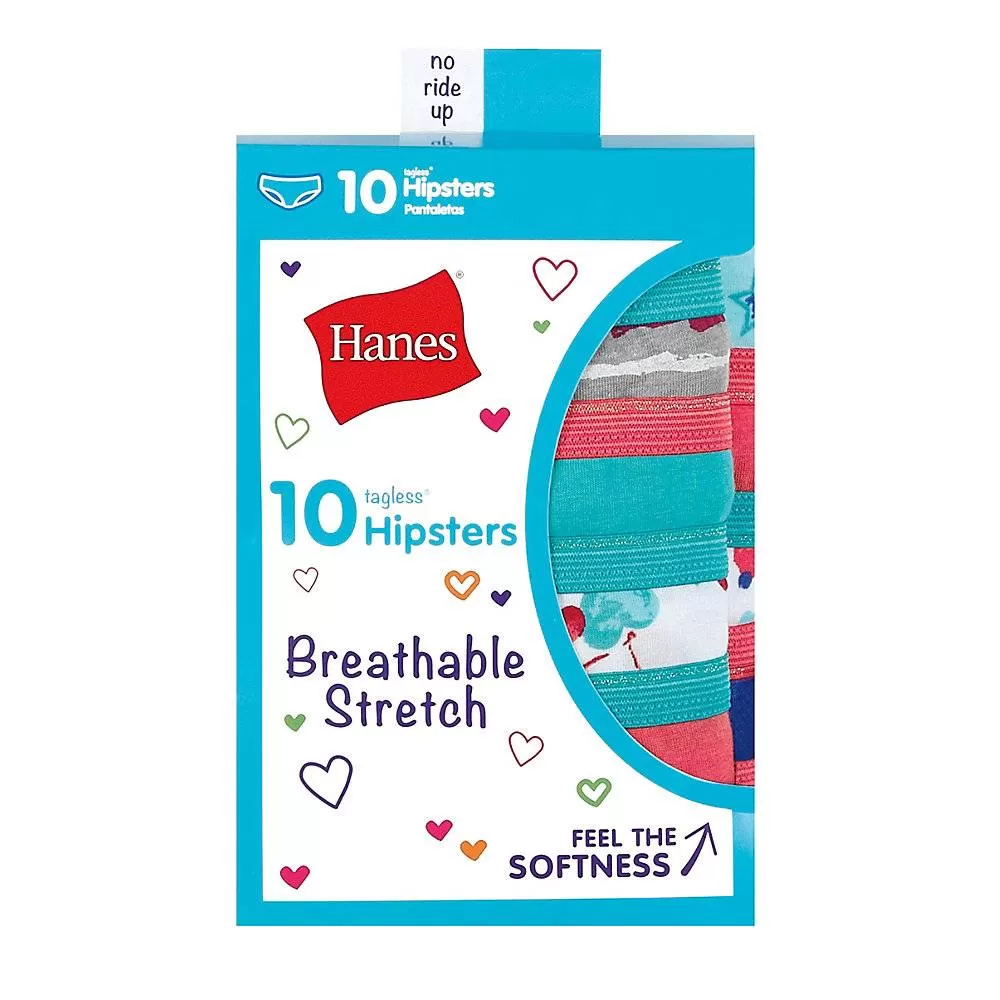 Information:These Breathable Stretch Hipsters keep up with all her moves. And then some. Soft, breathable cotton fabric with spandex for comfort that moves with her. Hipster styling sits at the hip.Tag-free for added comfort.No ride up guaranteed.Smooth, non-binding leg bands for total comfort.Available in sizes 6 thru 16.Assorted colors and prints available in a convenient 10-Pack.