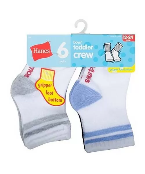 Information:Toddlers on the go will love these crew socks with non-skid bottoms.Super soft cotton blend with comfy toe seam.EZ Sort® sock matching system makes sorting socks so much easier! Non-skid bottom gives his feet more grip when he’s on the go. Available in a convenient assorted 6-pack.