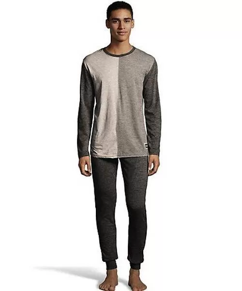 Information:Perfect for lounging or catching some zzz's. Pant is made with soft, cotton-rich jersey knit amd features a covered elastic waistband with adjustable drawstring, ribbed ankle cuffs, on seam pockets and a button fly.Soft jersey knit crewneck features a split front design.Both top and pant are tag-free for itch-free comfort.