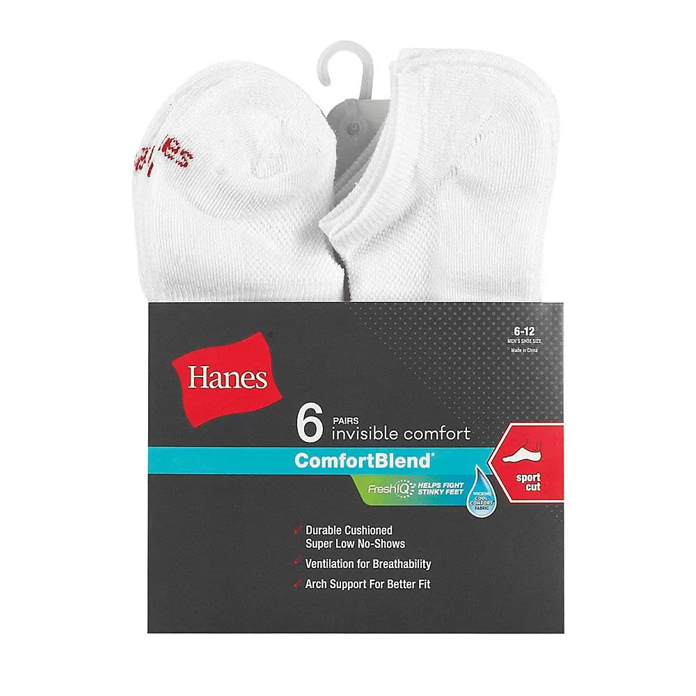 Information:FreshIQ™ advanced odor protection technology attacks the odor-causing bacteria in your clothing that causes your underwear and socks to smell — so now you can feel fresh all day.ComfortBlend® fabric is soft, smooth and durable.Wicks away moisture to keep feet cool and dry.Sport cut is super low providing invisible comfort.Ventilation for added breathability.Durable cushioning around the foot for added comfort.Arch support for better fit.Available in a convenient 6-pack.