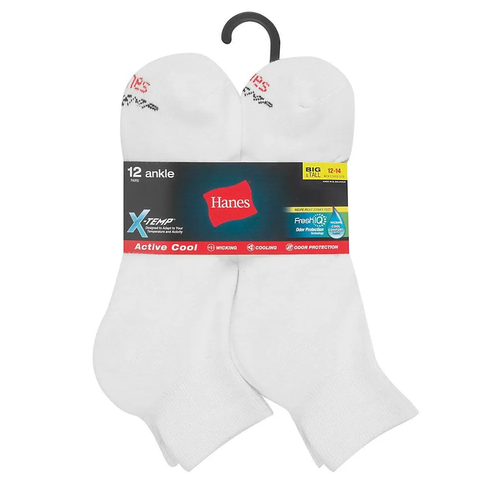 Information:FreshIQ advanced odor protection technology attacks the odor-causing bacteria in your clothing that causes your underwear and socks to smell — so now you can feel fresh all day.X-Temp technology is designed to adapt to your temperature and activity to keep you cool and dry for all day comfort.Active Cool® socks provide soft and lightweight comfort.Ankle length socks stay up for added comfort.Wicks away moisture to keep you cool and dry.Comfort toe seam, our most comfortable seam ever.Compact cushioning gives you all the comfort without all the bulkiness.Available in a convenient 12-pack.
