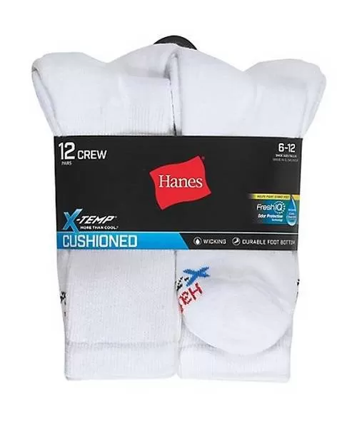 Information:FreshIQ advanced odor protection technology attacks the odor-causing bacteria in your clothing that causes your underwear and socks to smell — so now you can feel fresh all day.X-Temp technology is designed to adapt to your temperature and activity to keep you cool and dry for all day comfort.Active Cool® socks provide soft and lightweight comfort.Features arch compression: these socks cradle the foot and stay put, instead of sliding into the shoe like other socks do. Crew length socks stay up and hits at mid-calf.Wicks away moisture to keep you cool and dry.Comfort toe seam, our most comfortable seam ever.Compact cushioning gives you all the comfort without all the bulkiness.Available in a convenient 12-pack.