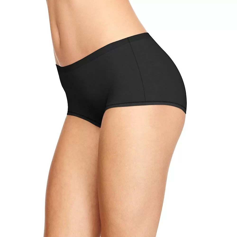 Information:Be Smooth. Be Confident. Be You. Comfort never looked so smooth.Cotton Stretch fabric moves with you for all day comfort.ComfortFlex Fit® shapes to fit you comfortably.SmoothTec™ waistband lays flat and smooth against your skin.Full coverage boyshort gently hugs your curves with a longer leg for extra coverage.No ride up for stay-in-place assurance.Tag-free for itch-free comfort.Available in a convenient 4-Pack.