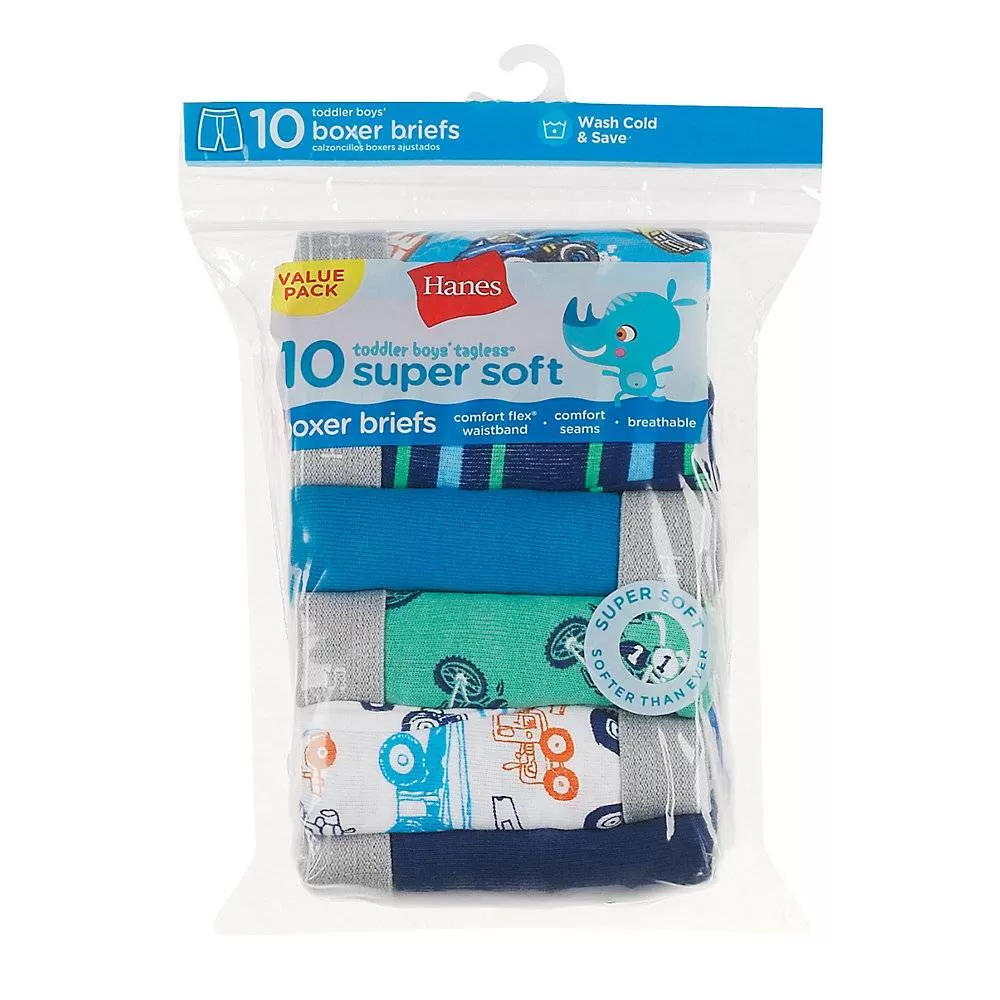 Information:Toddlers will feel like big boys in these fun little boy boxer briefs.Made with soft, breathable cotton.Comfort Flex® waistband for move-with-you comfort.Comfort seams for all day wear.Tag-free for itch free comfort./li>No ride up fit./li>Assorted prints and colors available in a convenient 10-pack.
