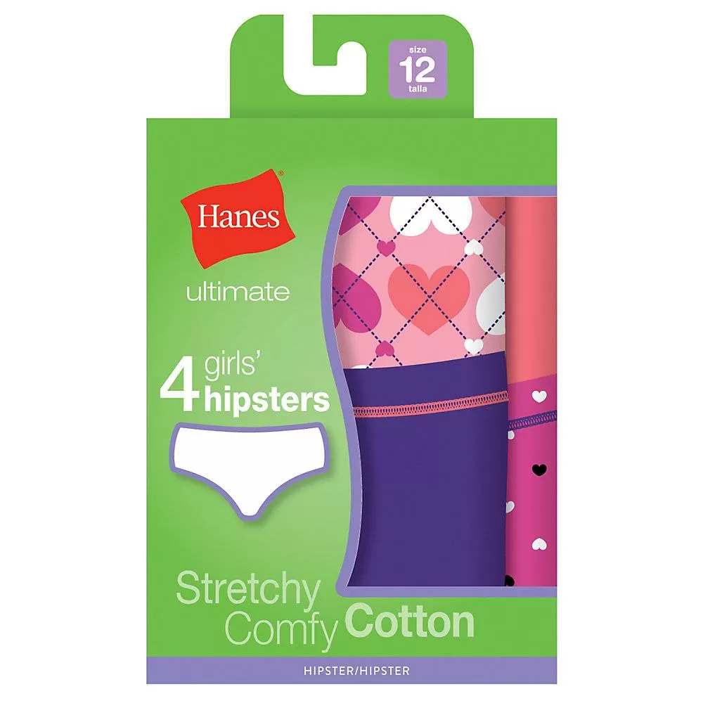 Information:These Cotton Stretch hipsters were made for girls on-the-go!Cotton Stretch fabric has a touch of spandex for move-with-you comfort.ComfortSoft® waistband is softer on the skin.Tag-free for itch-free comfort.No ride up leg bands.Hipster styling sits at the hip.Assorted colors and prints available in a convenient 4-pack.