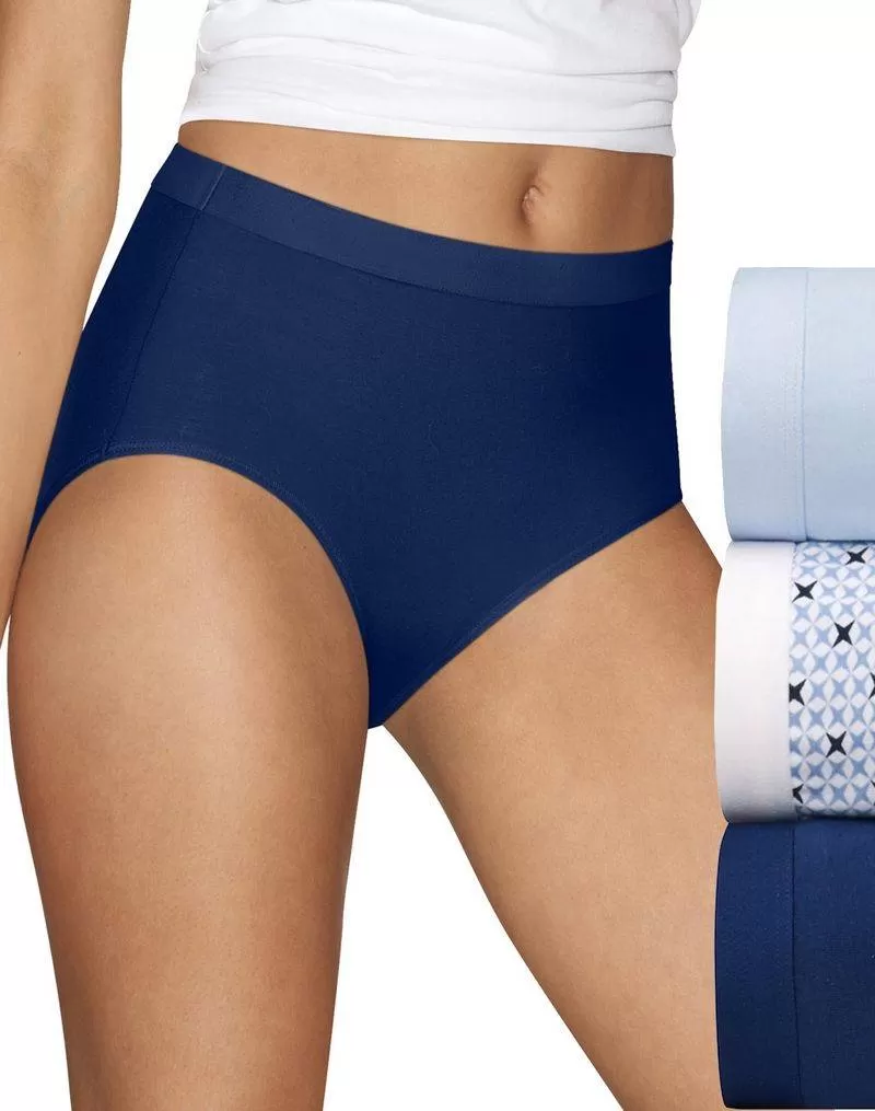 Information:The ultimate in comfort! Our Hanes Ultimate Collection is made with super soft, ring spun cotton. Look for comfort features in every detail, including no ride up comfort.X-Temp™ technology designed to adapt to temperature for all day comfort.ComfortBlend® fabric moves with you for a customized fit.Wicks moisture away from your skin.Comfort Flex® sheer stripe waistband won't dig in.No ride up.Brief cut features a higher rise and excellent seat coverage.Tag-free for itch-free comfort.Available in a convenient 3-Pack.