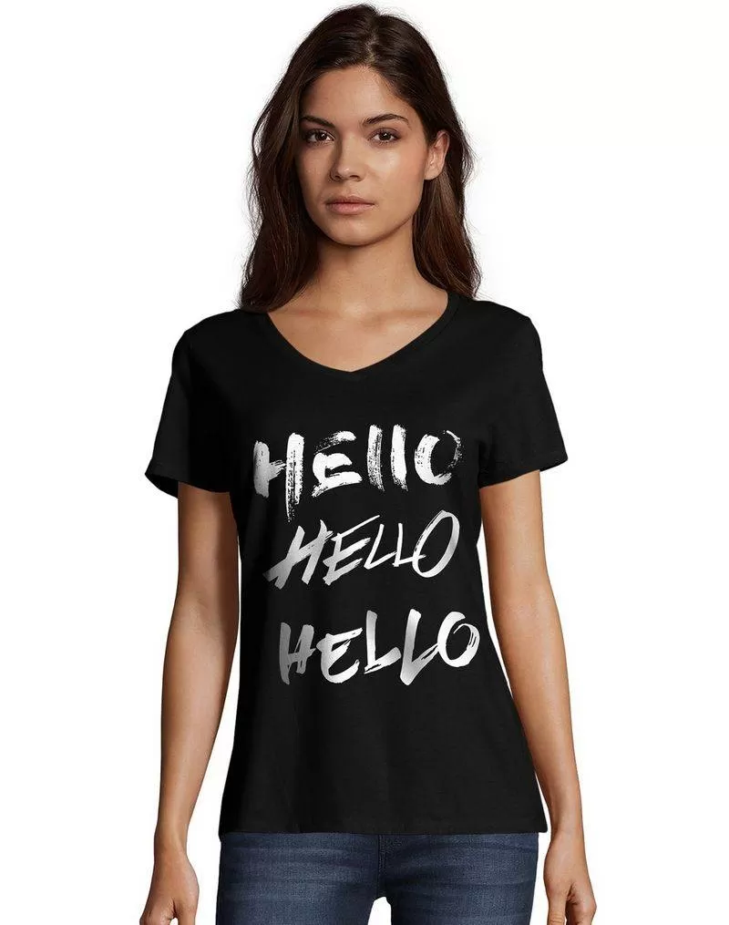 $8.04 $4.56 Save Up to 43% 10/03/2026 New Out of stock! https://www.apparelshopusa.com/hanes-womens-hello-hello-hello-short-sleeve-v-neck-graphic-tee-115054.html