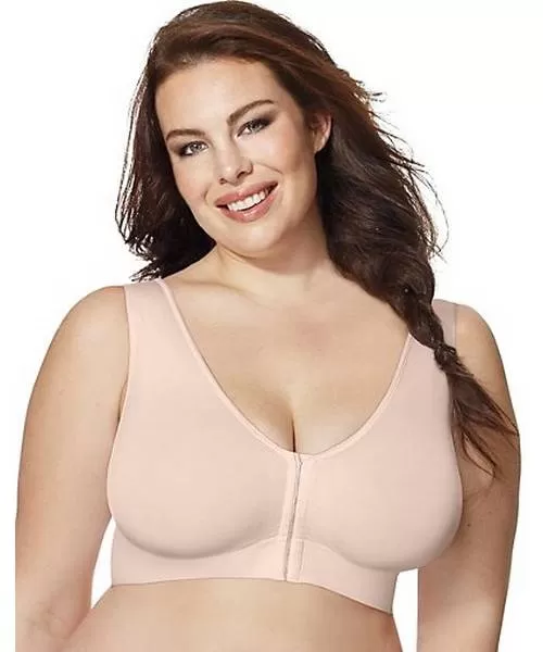 Information:You asked. We listened. Presenting the Pure Comfort Bra with convenient front-hook closure.Our bestselling JMS bra just got even better. No seams. No wires. No hassles. Plus, it slips on in no time! Hook-and-eye front closure fastens quickly for easy on/off. Flexible comfort design shapes to fit your curves. Silky seamless fabric stretches 4 ways for freedom of movement. Knit-in light support adds subtle underbust shaping. Wide back helps smooth away bulges for a sleeker look under clothes. Wider bottom band helps prevent dig-in and roll-up. Six convenient sizes make it simple to find your best fit.