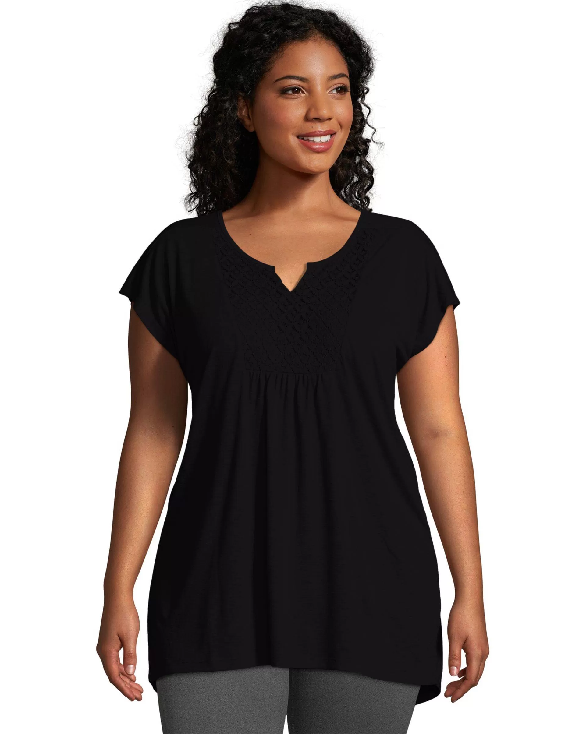 $11.40 $6.74 Save Up to 41% 10/03/2026 New Out of stock! https://www.apparelshopusa.com/just-my-size-short-sleeve-slub-jersey-womens-tunic-with-split-v-neck-crochet-bib-yoke-18537.html