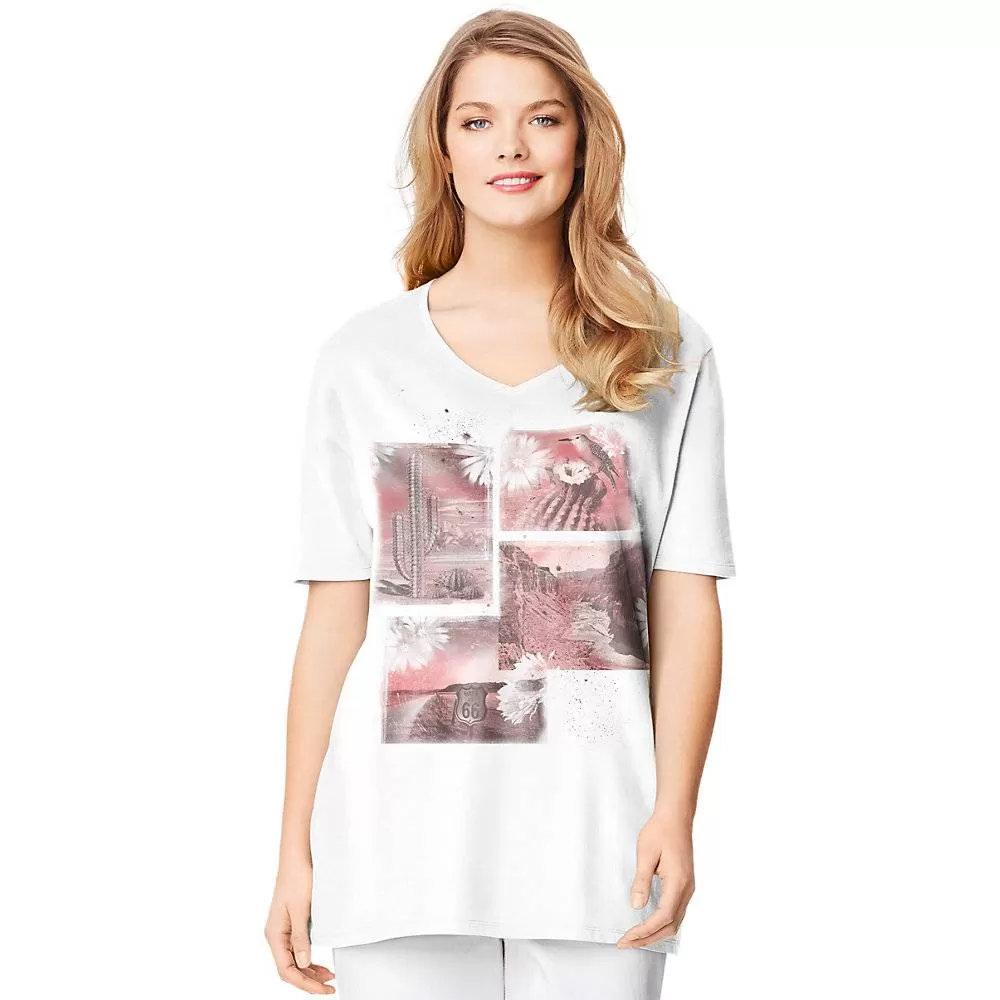 Review: 5 - "This is very good V-Neck Women's Graphic Tee" by Linda M Crawford, written onInformation:Your favorite graphic tee is back — with a softer, lighter fabric and a fresh new fashion print.Back by popular demand! It's the cute graphic tee you love, updated for extra comfort, with an adorable doggie print. Luxe cotton-rich blend feels blissfully soft and cool. Mini-ribbed V-neckline frames and flatters your face. 29.5-inch length streamlines your silhouette. Tag-free for itch-free comfort, with durable double-stitch trim. NOTE: French Terrier print includes glitter. For roomier fit, go up one size. 4.5-oz. fabric weight. Machine wash, cold. Tumble dry, low.