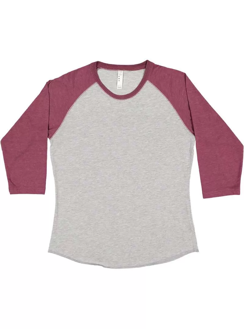 LAT™ Ladies' Modern Fit Fine Jersey Crew Neck Raglan 3/4 Sleeve Baseball Tee with Raw Serge Shirt Tail Hem