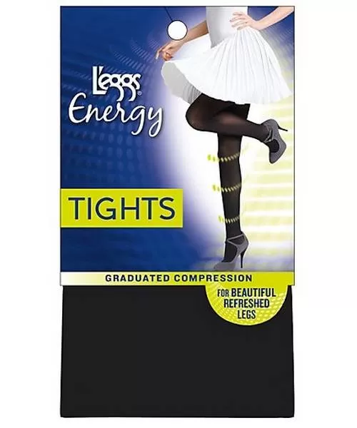 Information:L'eggs Energy Tights offer graduated compression for beautiful, refreshed legs. All over graduated compression combined with soft, sensuous yarns so you not only feel great, you look great too. Made with L'eggs signature fit & quality. You're in Luck. You're in L'eggs.® Micro massaging legs with 360-degree support. Designed to help energize your legs. Semi-opaque 60 denier premium yarns.