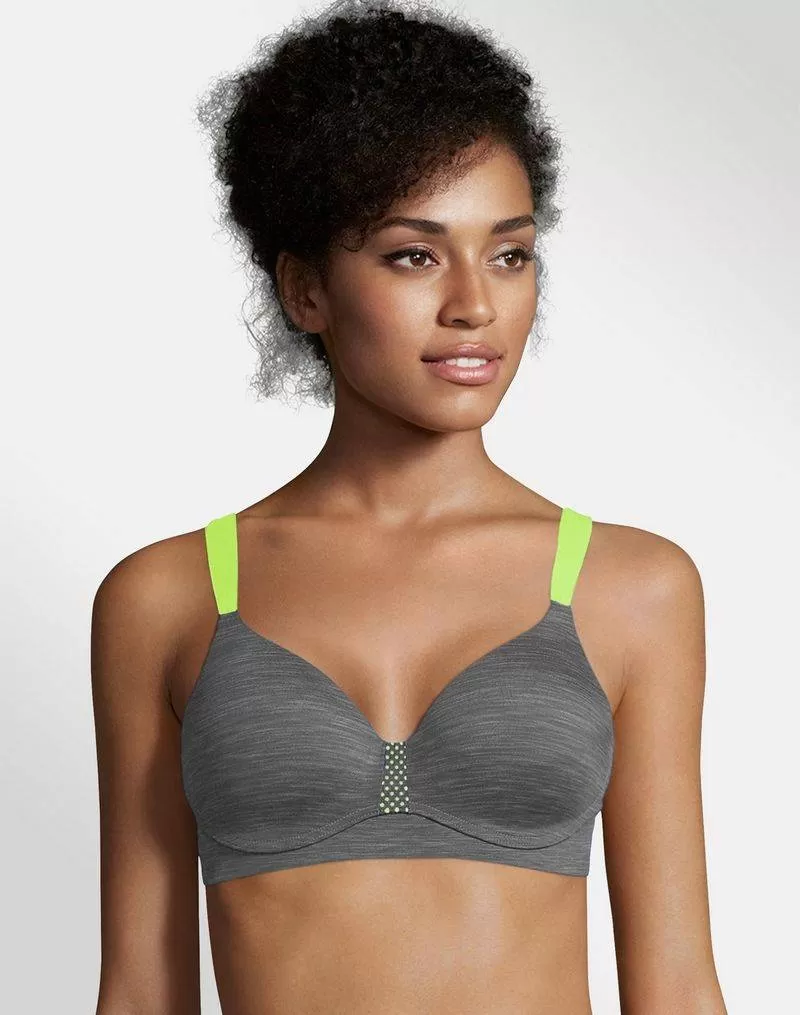 Finally sports bras that flatter your shape! With high performance features: shaping support, bounce control, and moisture wicking.Modeled after our popular Comfort Devotion Wirefree style 09456.Lightweight foam seamless cups with wicking sport liner help shape and support without the wire.Cushioned, adjustable straps can be worn cross-back.Motion control cup technology helps minimize bounce.Signature shaping support keeps you in place as you do low impact activities like yoga and walking.Double-lined wings for added comfort and support.