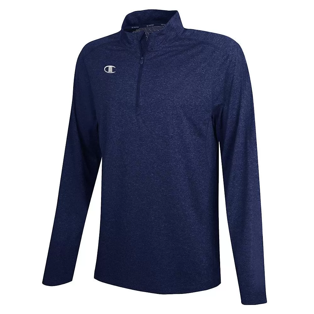 Information:C Vapor Technology. Â Work Harder, Dry Faster. Â Fabric wicks moisture and dries faster to keep you cool and dry. Â Long sleeve 1/4 zip has droptail to keep you covered. Â Ventilation zones for breathability. Â Reflective "C" logo left sleeve. Â Champion script back neck. Â C Vapor logo right hem. Â Tag free.