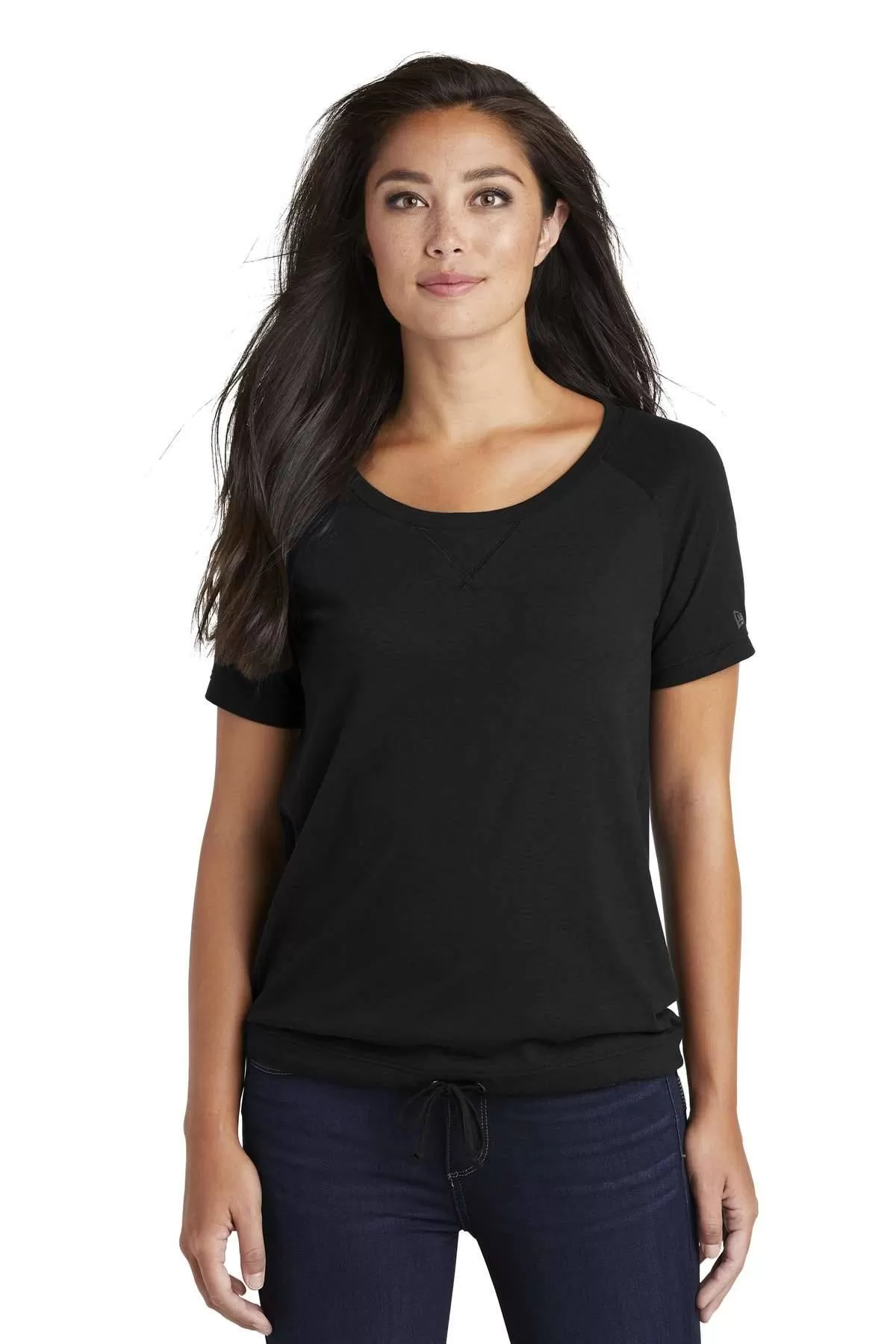 Information:Vintage-inspired, yet completely modern, this moisture-wicking tee cinches at the waist for full coverage. 4.3-ounce, 50/38/12 poly/ring spun combed cotton/rayon, 30 singles Self-fabric neck Scoop neck V stitching at neck Heat transfer label for tag-free comfort Raglan sleeves Heat transfer New Era flag logo on left sleeve Self-fabric waist drawcords with knotted tips