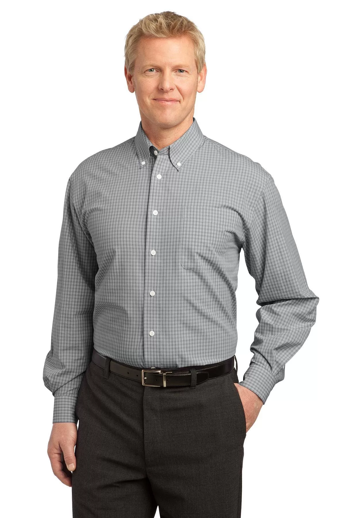 Information:A not-too-bold plaid pattern offers a welcome break from a solid color. Designed for comfort and wrinkle-resistant convenience this yarn-dyed poplin shirt is ideal for both dress and casual wear. 3.2-ounce 55/45 cotton/poly Button-down collar Pearlized buttons Left chest pocket Box back pleat Button-through sleeve plackets Adjustable cuffs