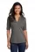 Review: 5 - "professional look" by Karen Temple, written onInformation:With an elevated heather look, this office-ready top has plenty of stretch for unrestricted movement. With moisture wicking, this style also performs. 5.2-ounce, 93/7 poly/spandex drop needle jersey Tag-free label Open neckline Center front placket detail Dyed-to-match buttons Front seaming Open hem sleeves Slightly longer sleeves Slightly curved hem